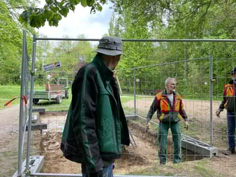 Aufbau eines Spieltisches am Spielplatz "Mensch ärgere dich nicht"