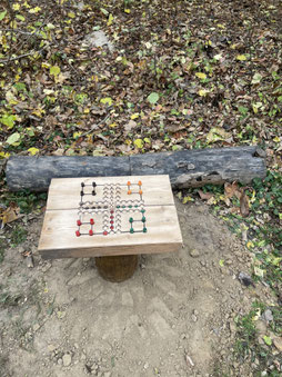 Aufbau eines Spieltisches am Spielplatz "Mensch ärgere dich nicht"